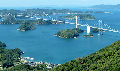 ガイドの解説を聞きながら主塔へ登ると、瀬戸内海に浮かぶ島々や穏やかな海の景色を一望できます。学びと絶景で満たされる旅へ。